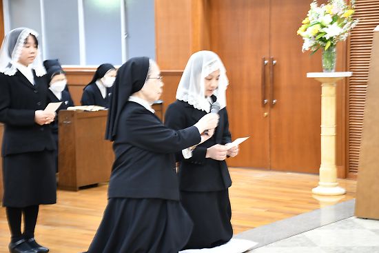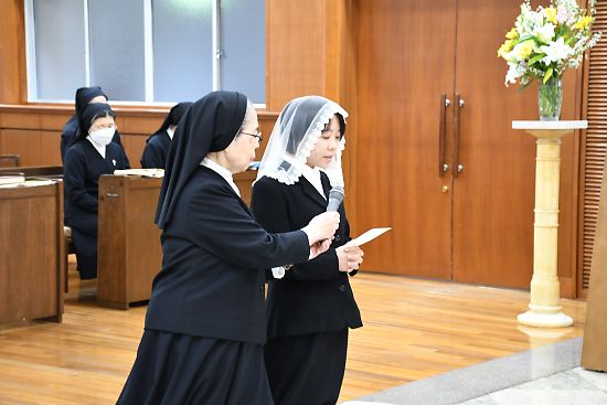 2名の修練開始式が仁川本部修道院聖堂で、多くのシスターたちが祈り、見守るなか執り行われ
