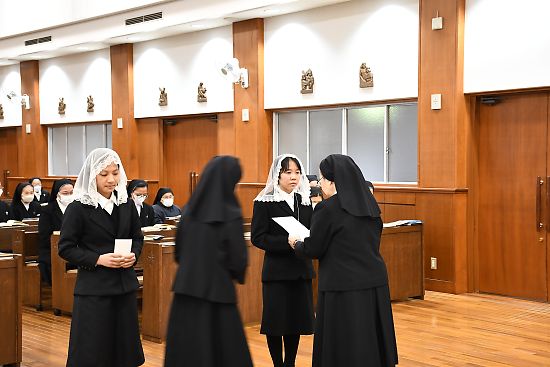 ました。彼女らはこれから修練期をとおして、祈りとキリスト中心的生活を深め、神の御声を聴きわけ